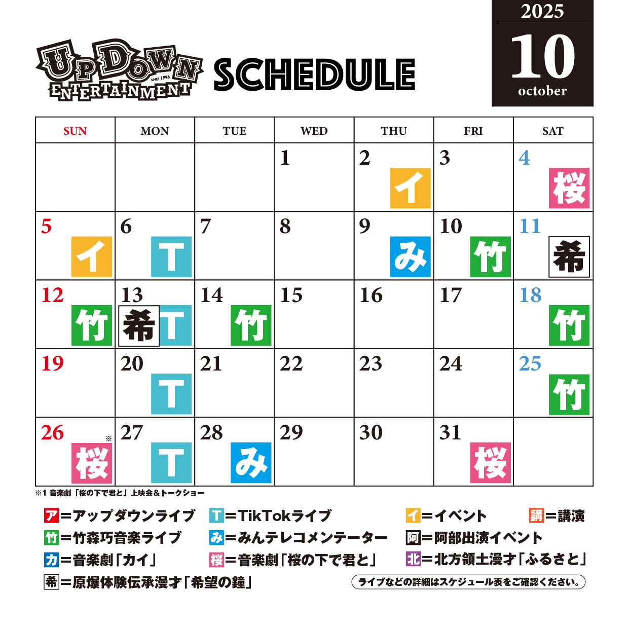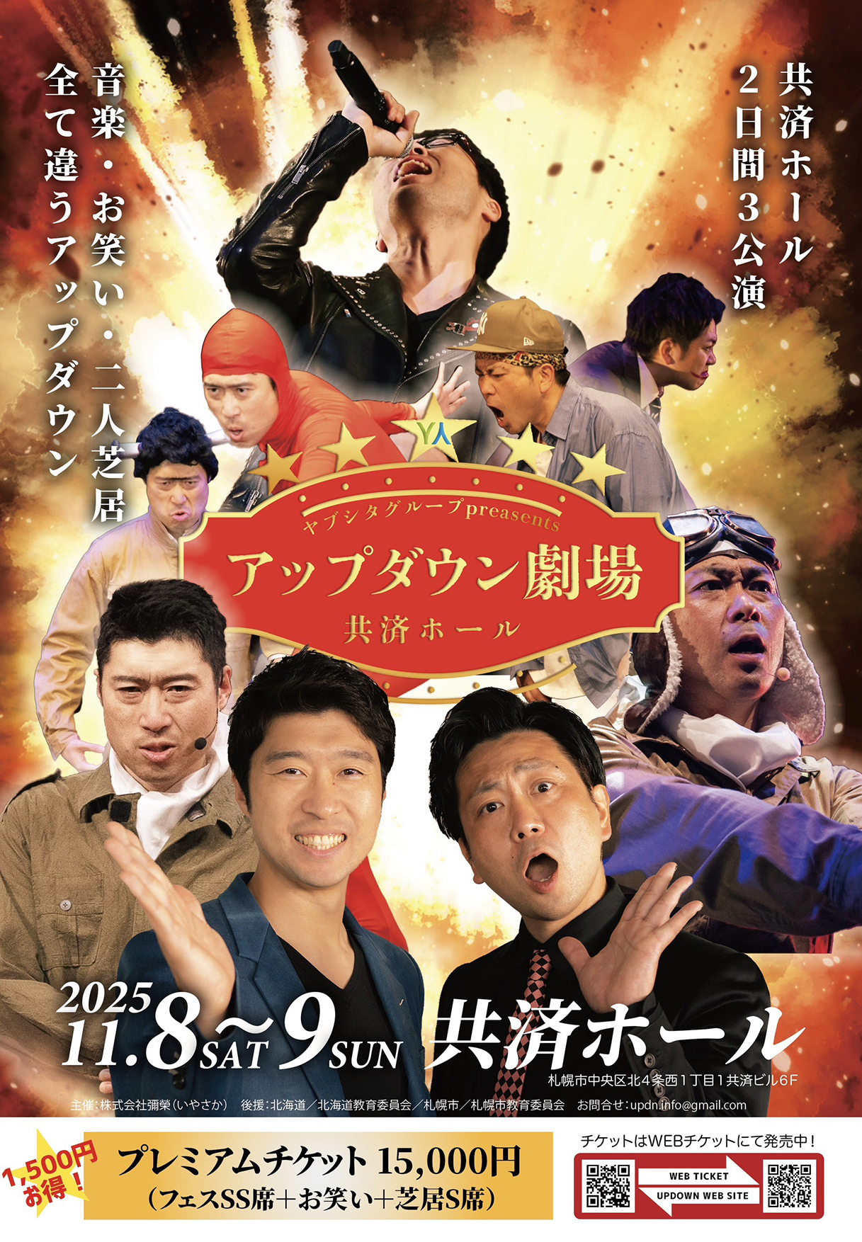 | 2025年11月9日(日) | アップダウン劇場「アップダウンお笑いライブ」 チラシ画像▶︎ 会場:共済ホール(札幌市中央区北4条西1丁目1共済ビル6F) |