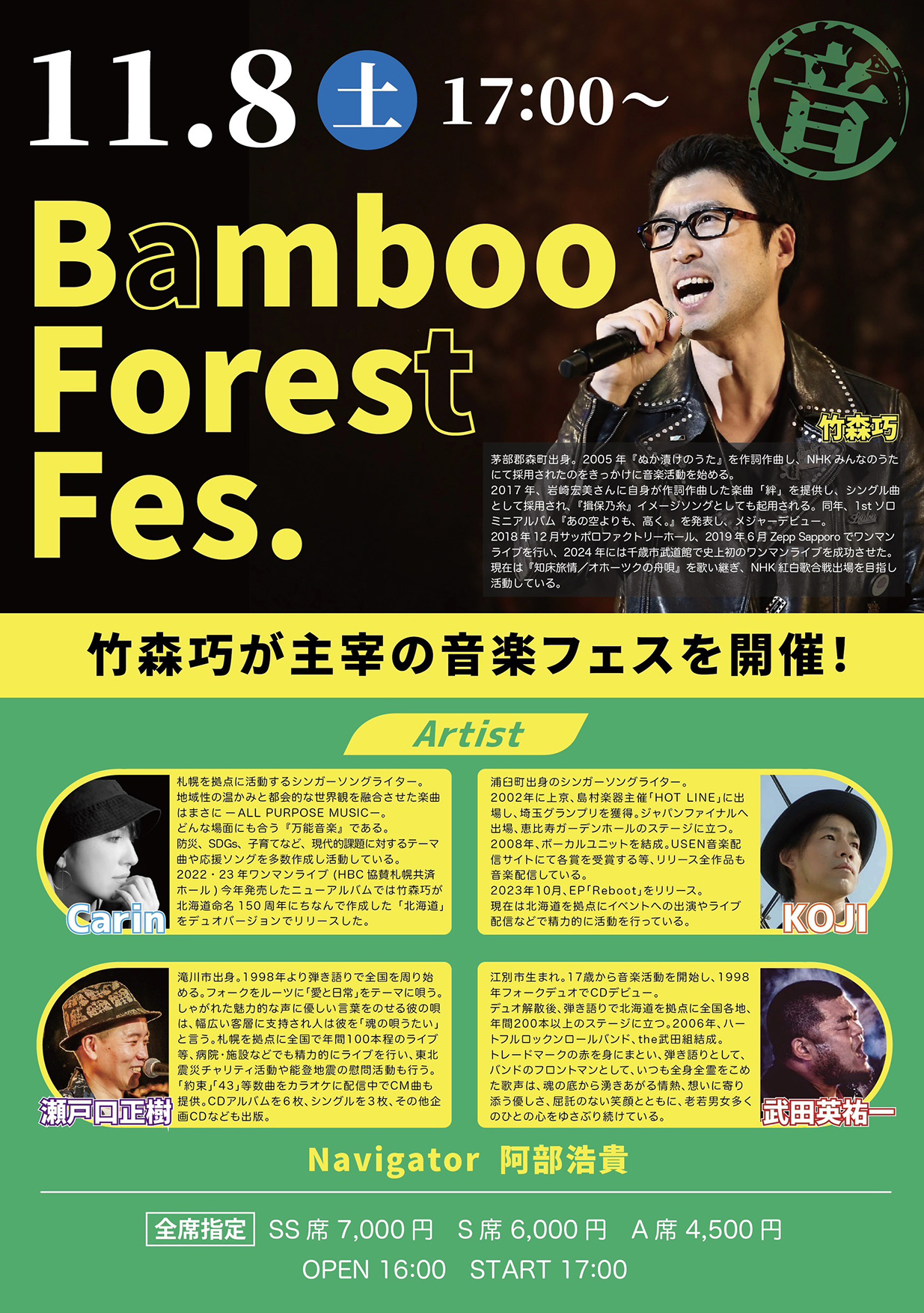 <11月8日公演>竹森巧主宰音楽フェス「Bamboo Forest Fes.」