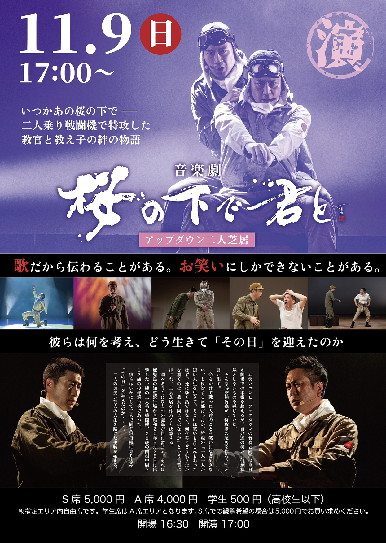 <11月9日夜公演>アップダウン二人芝居、音楽劇「桜の下で君と」