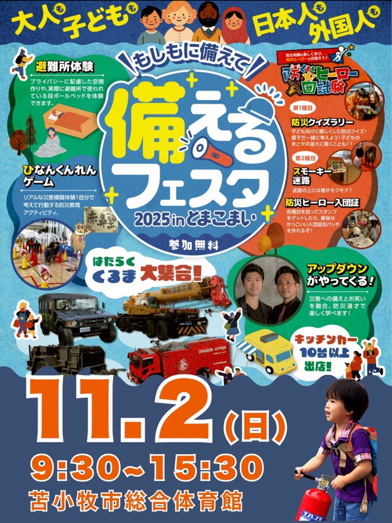 | 2025年11月02日(日) | 備えるフェスタ2025inとまこまい チラシ画像▶︎ 開場 9:30/開演15:30 |