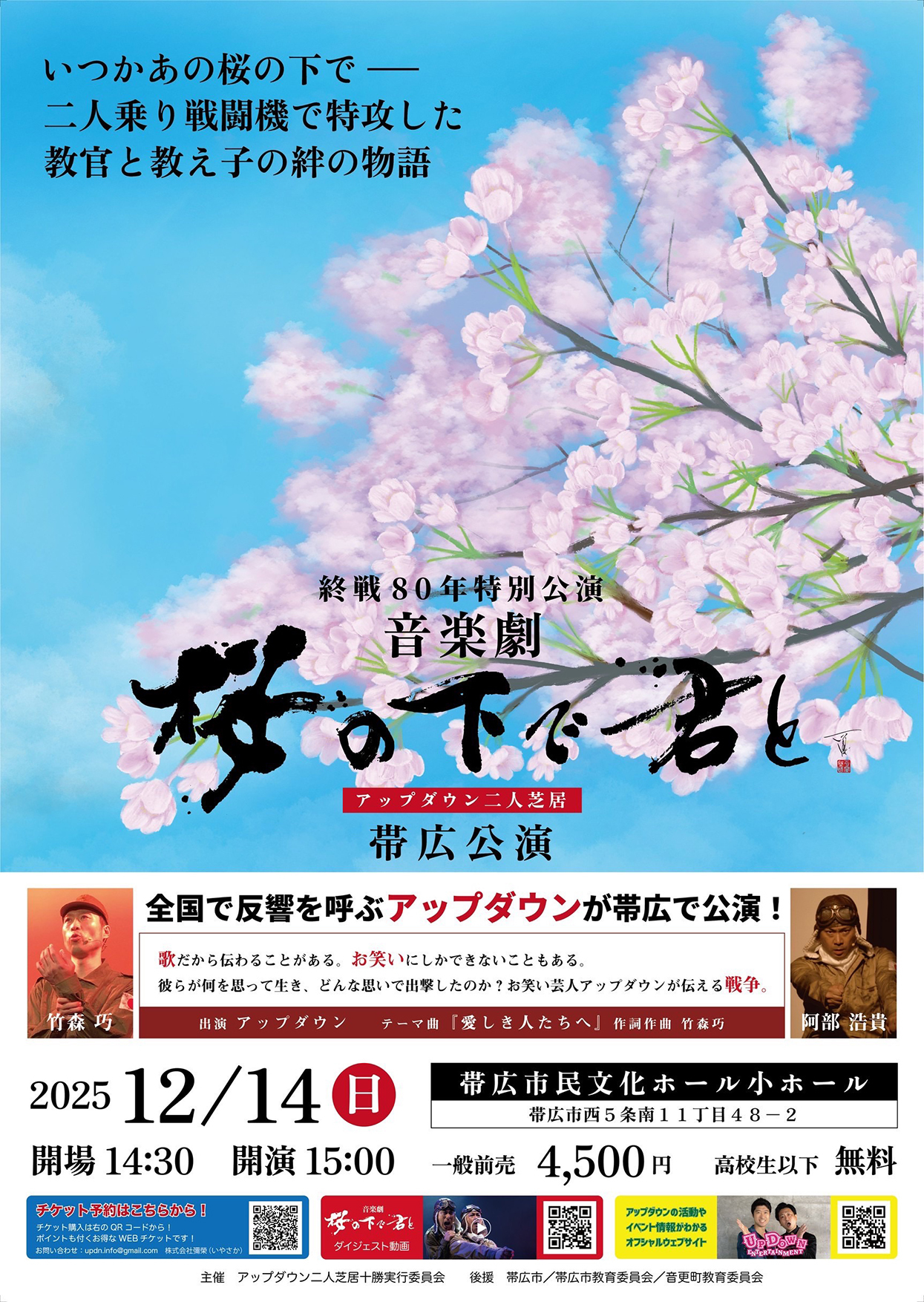 | 2025年12月14日(日) | 終戦80年特別公演 アップダウン二人芝居 開場14:30/開演15:00 |