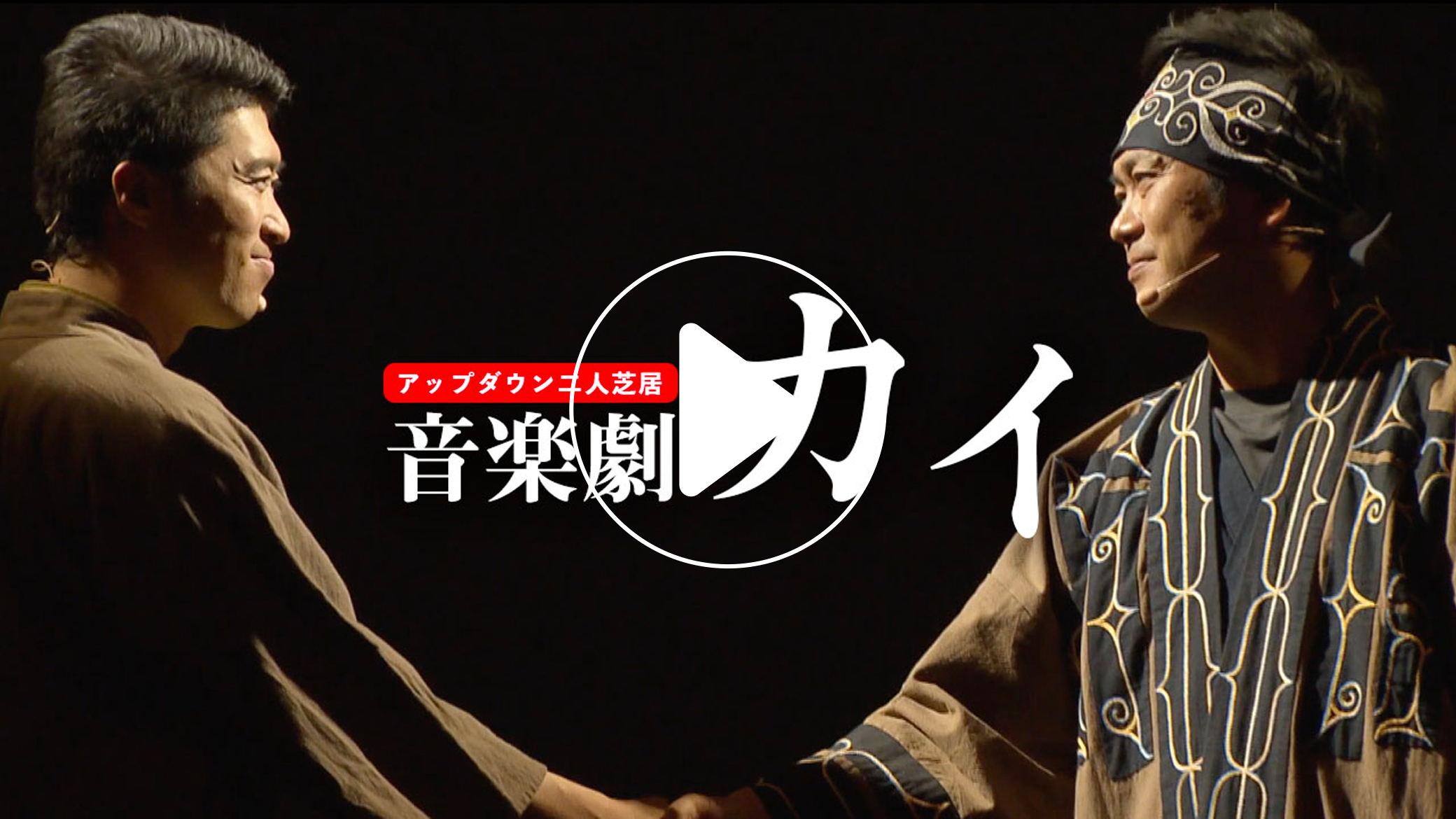 二人芝居・音楽劇は、アップダウンのオリジナルコンテンツ。 笑いと音楽を織り交ぜながら、一人で何役もこなして繰り広げる舞台は、大掛かりなセットがなくても観る人のイマジネーションを刺激し、いつしか会場の一体感を生み出している。
